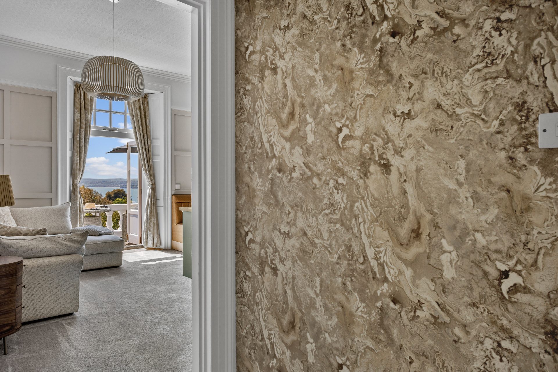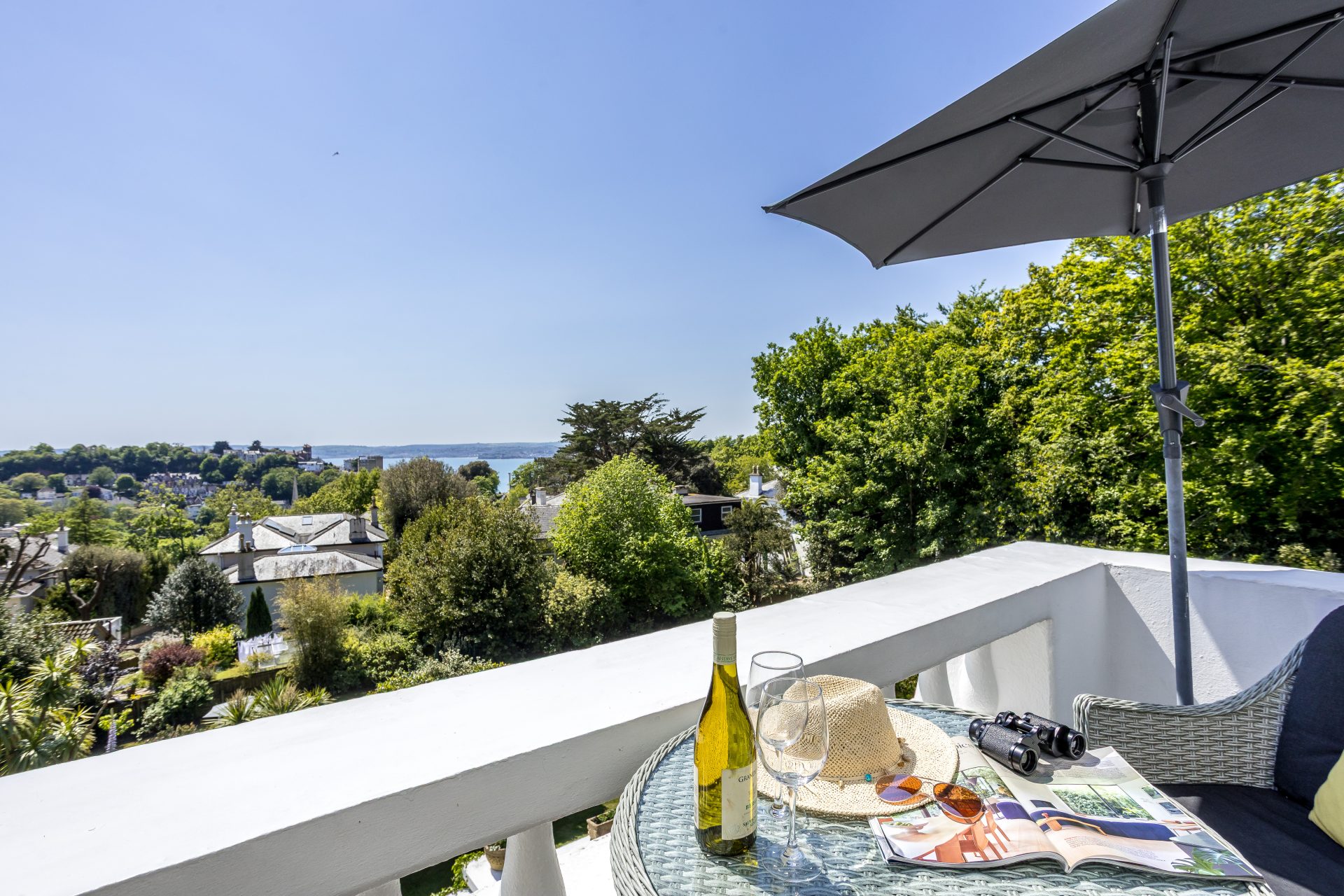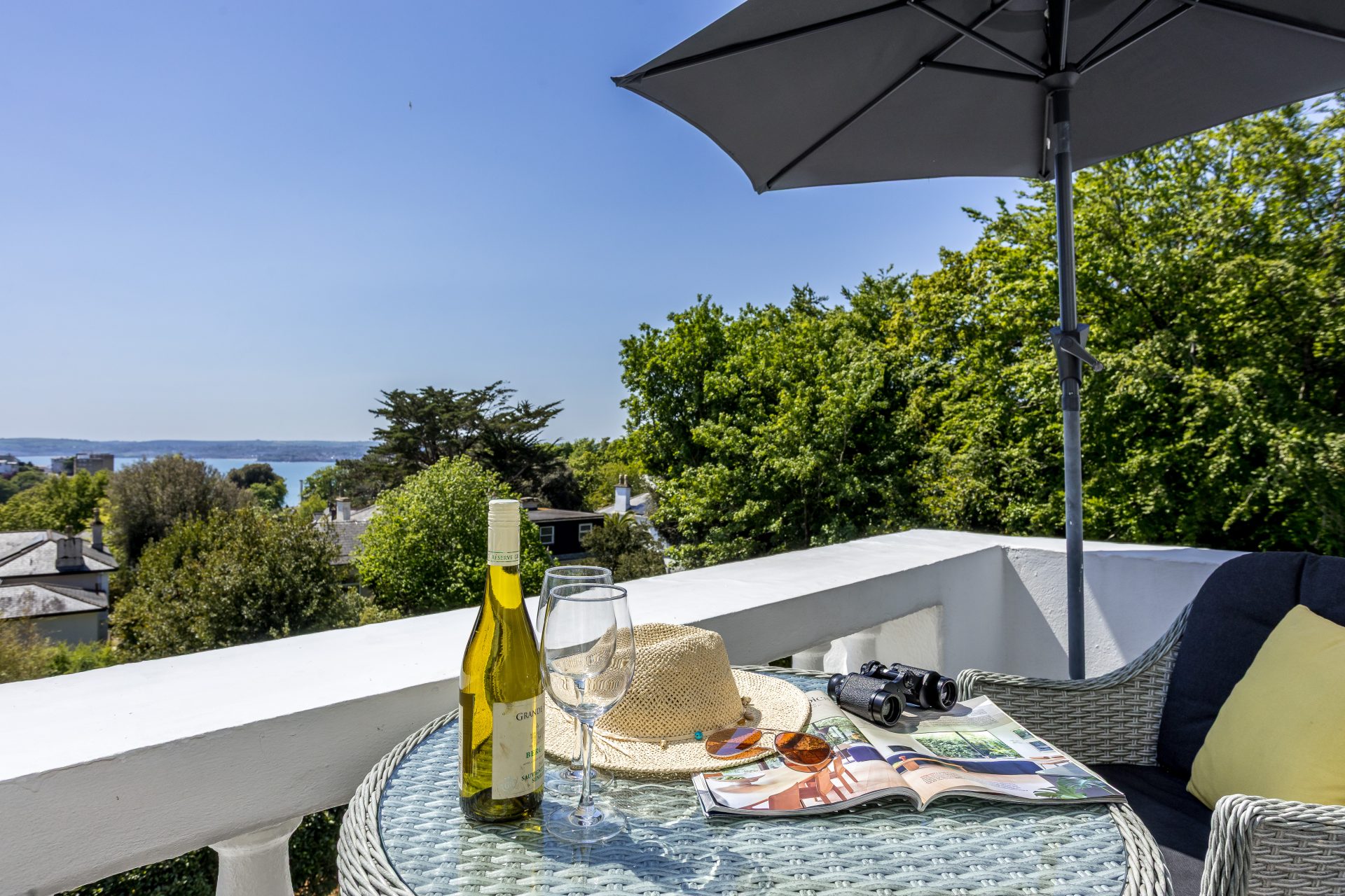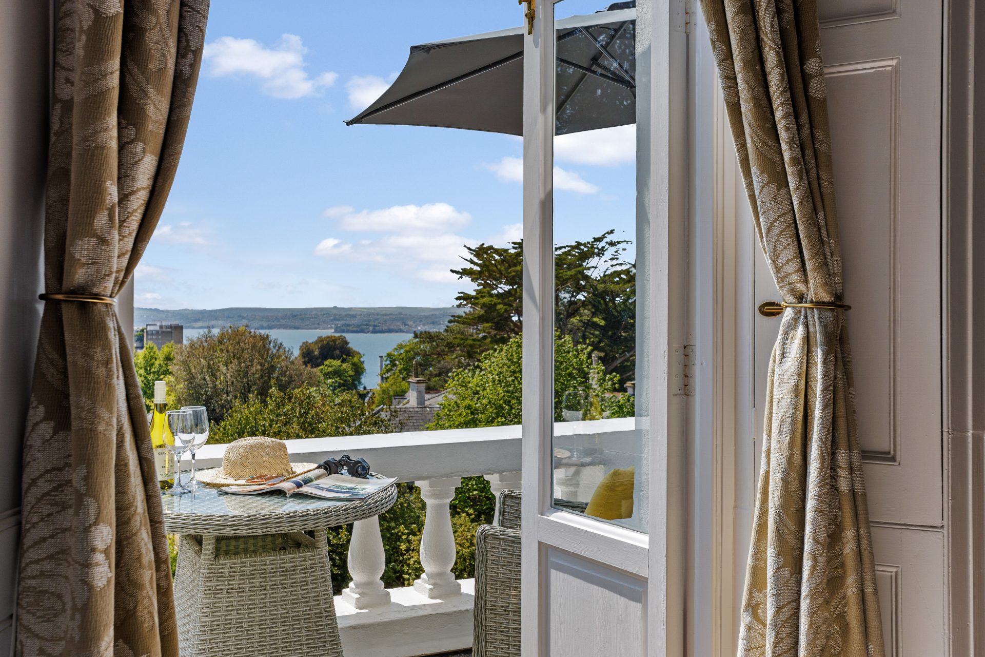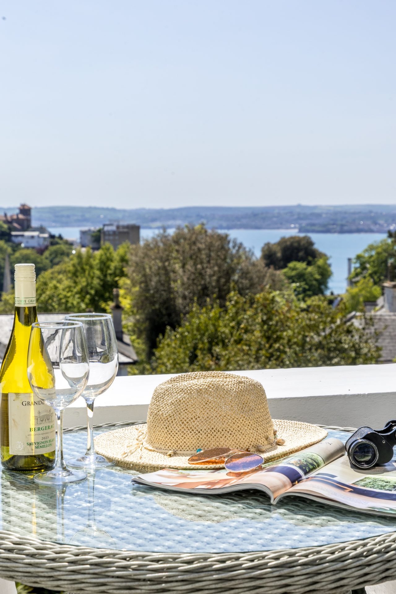 Open plan light and airy living area with corner sofa and dining table for four. Napoli has a fully equipped kitchen housing an oven, fridge with freezer compartment and microwave. French doors from the lounge open onto a private balcony with outside rattan bistro table, comfy chairs and sun parasol to enjoy stunning views over the gardens and sea beyond.